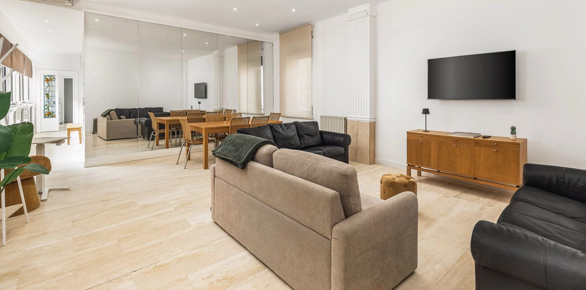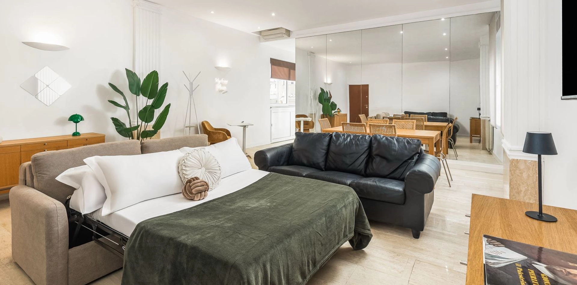 Penthouse Tritone è un esclusivo appartamento situato nel cuore di Roma, in Via del Tritone, a pochi passi da luoghi iconici come la Fontana di Trevi e Piazza di Spagna. Questo raffinato attico al quinto piano di un elegante palazzo d’epoca rappresenta una perfetta combinazione di design moderno e posizione privilegiata.