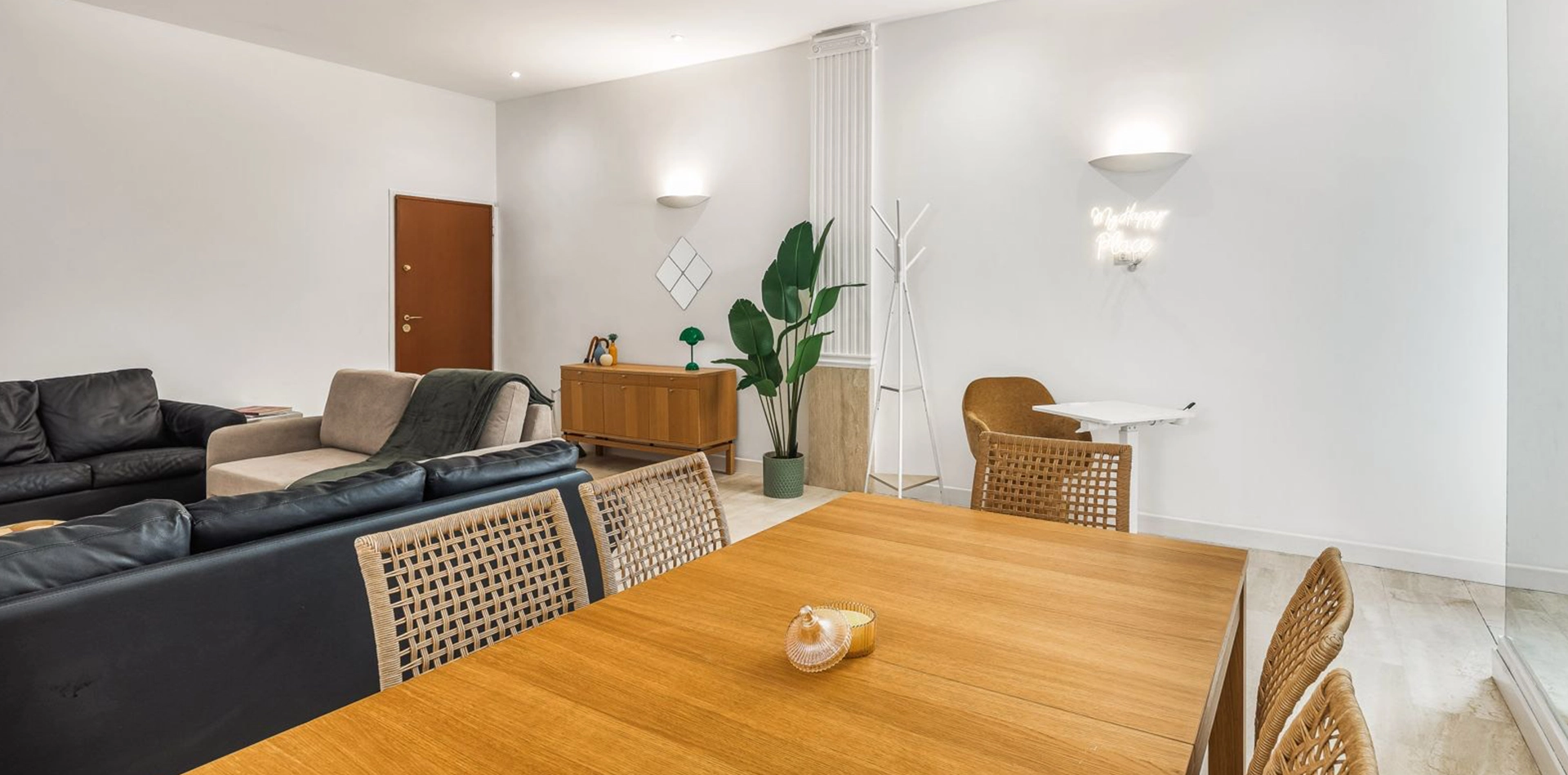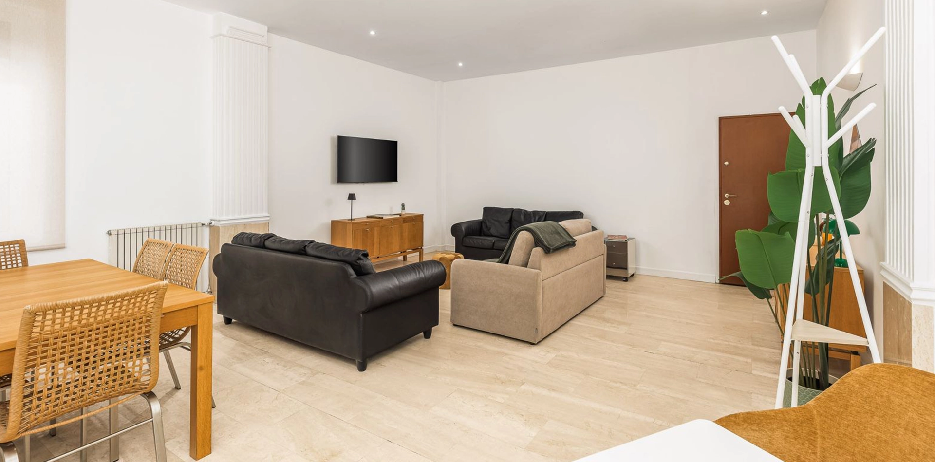 L’appartamento offre ampi spazi luminosi, con una vista suggestiva sul quartiere circostante. La zona living open space è il cuore della casa, con un comodo divano letto, Smart TV con Netflix e grandi finestre che inondano l’ambiente di luce naturale, creando un’atmosfera accogliente per rilassarsi o ospitare gli amici.